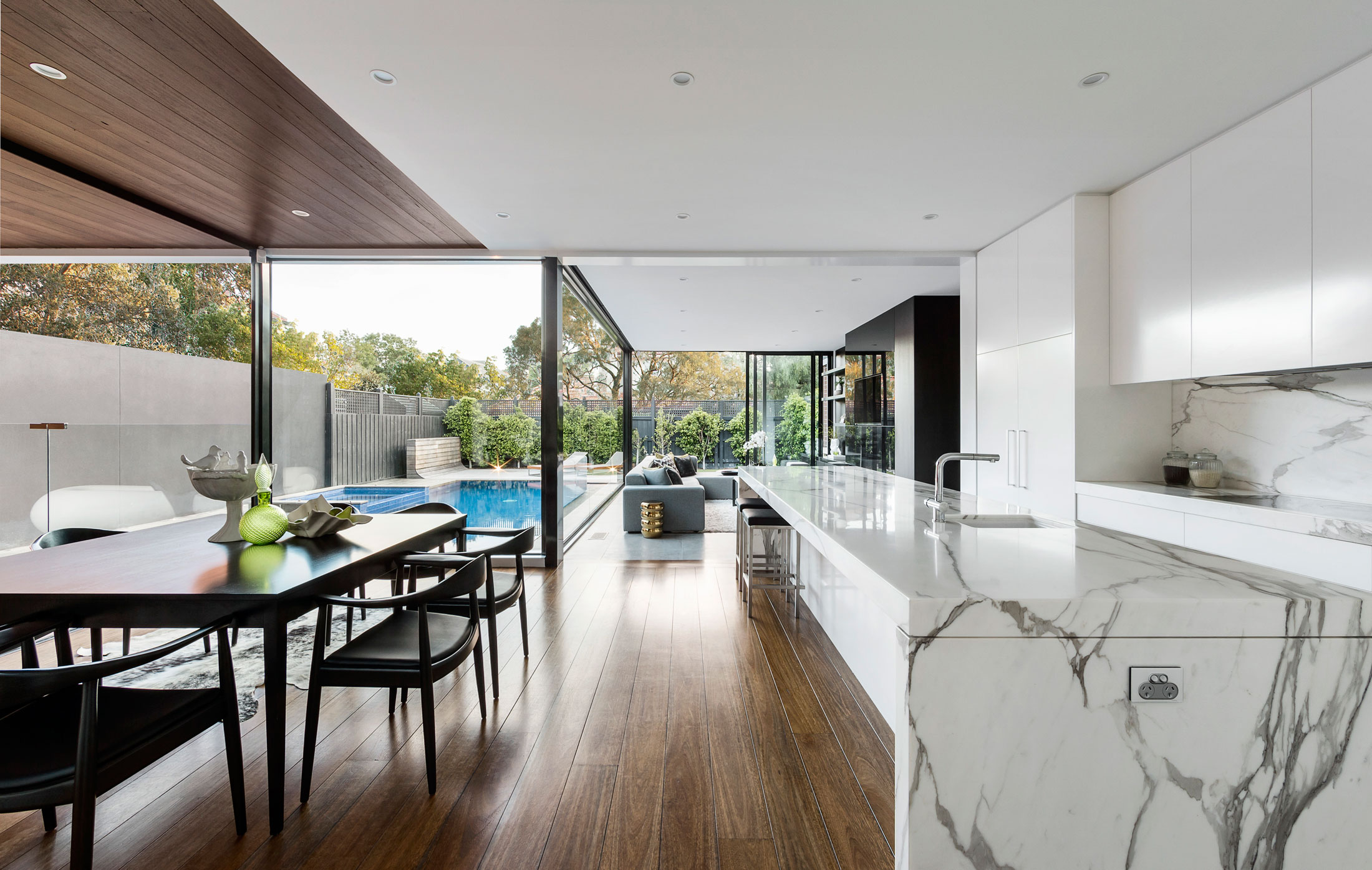 開(kāi)放式廚房是指巧妙利用空間,將實(shí)用美觀的餐桌與廚房緊密相連,形成一個(gè)開(kāi)放式的烹飪就餐空間。開(kāi)放式廚房營(yíng)造出溫馨的就餐環(huán)境,讓居家生活的貼心快樂(lè)從清早開(kāi)始就伴隨全家人。中等戶(hù)型的家庭會(huì)根據(jù)空間的特點(diǎn)來(lái)放置各種結(jié)構(gòu)的櫥柜,無(wú)論是島型操作區(qū),或是L型操作區(qū)、方正空間常用的U型操作區(qū)、具備分隔空間功能的T型操作區(qū),都能毫不費(fèi)力地開(kāi)辟出擺放餐桌的位置。